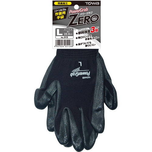 トワロン ニトリル背抜き手袋 パワーグラブZERO ブラック L 512-L