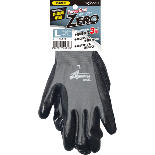 トワロン ニトリル背抜き手袋 パワーグラブZERO グレー L 513-L
