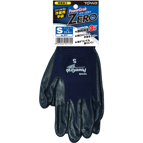 トワロン ニトリル背抜き手袋 パワーグラブZERO ネイビー S 517-S