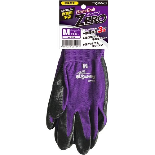 9. トワロン ニトリル背抜き手袋 パワーグラブZERO パープル M 519-M