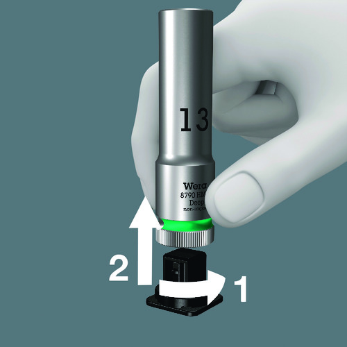 ●ベルトに固定されたソケットはツイストすることで取り外し、取り付けが簡単です。