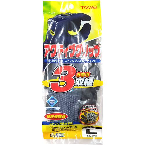 トワロン まとめ買い ニトリル背抜き手袋 アクティブグリップ L (3双入) 583-L