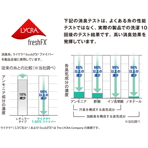 ●消臭糸ライクラ[[R上]]freshFX[[R上]]を採用しています。