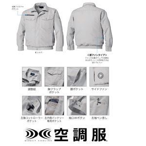 KU92030 空調服 R 綿・ポリ混紡 横ファン FAN2200B・CBB500ロングケーブル・LISUPER1セット シルバー 5L