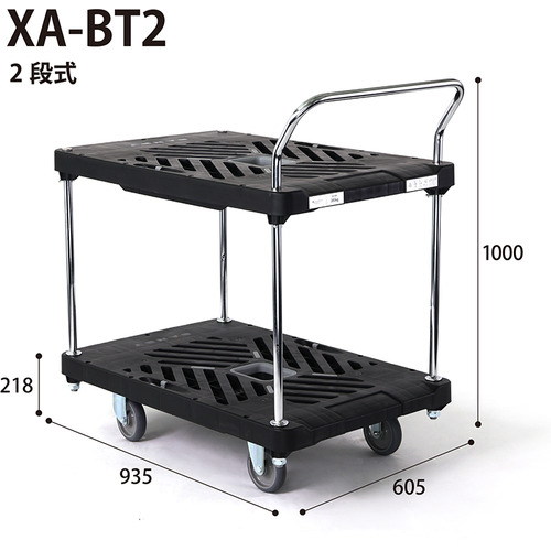 ダンディ プラスチック台車 ダンディXシリーズ タイプXA 2段テーブル片ハンドル式 W935×D605 XA-BT2