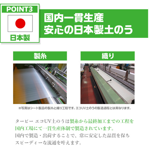 ●紫外線劣化防止剤の添加により、耐候性に優れ、中期間設置の土塁に最適です。