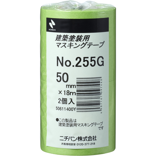 ニチバン  建築塗装用マスキングテープ 255Gー50 50mmX18m(2巻入り/PK) 255GH-50