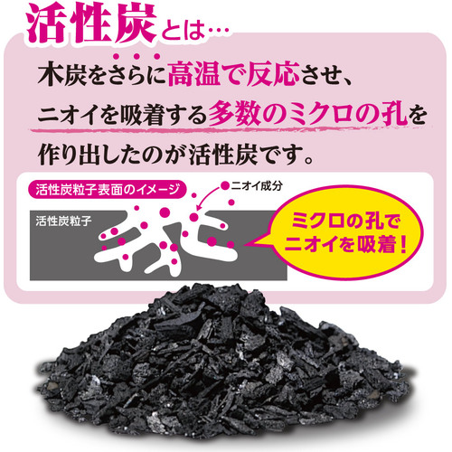 ●活性炭・竹炭・備長炭の炭の力で1年間強力脱臭します。