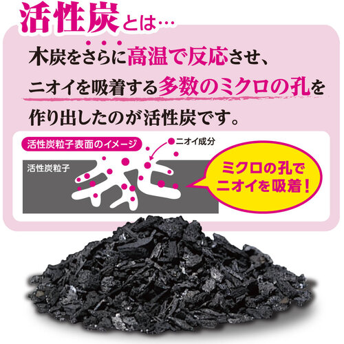 ●活性炭・竹炭・備長炭の炭の力で強力脱臭です。