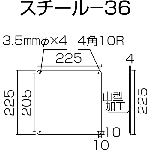 緑十字 スチール無地板 白 スチール-36(白) 225×225×0.5mm 普通山型 058361