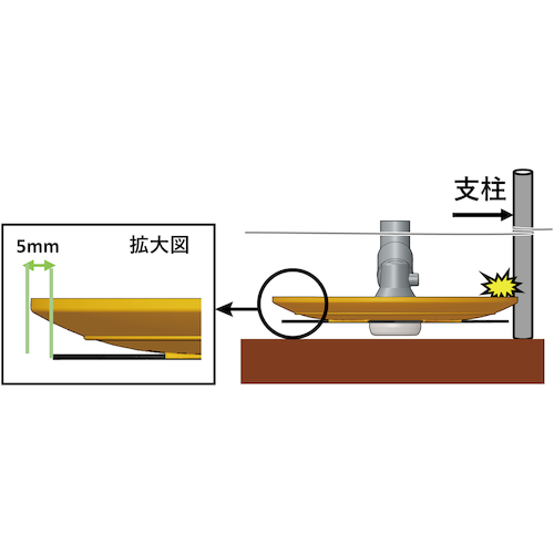●ワイドカバーは外径の刈刃より10mm大きいので、電気柵の支柱に接触しても支柱を切断する恐れがありません。