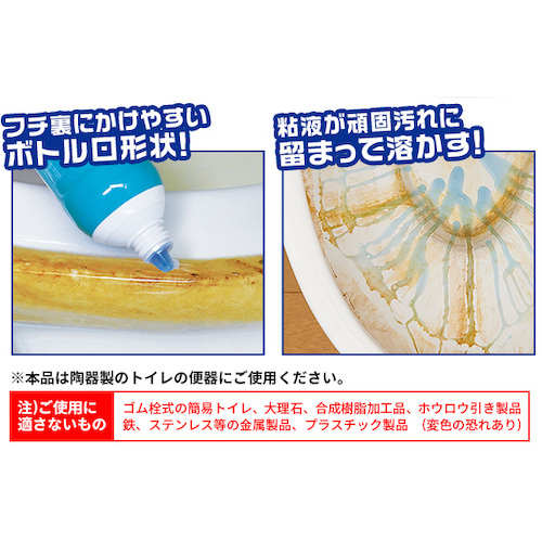 ●粘度のあるブルーの洗浄液が尿石・黄ばみ汚れに密着します。