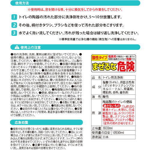 ●塩酸(9.4%)、界面活性剤(ポリオキシエチレンアルキルエーテル)、除菌剤、増粘剤、香料、着色剤