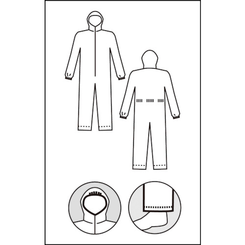 ●防護服に要求される3つの要素:バリア性、耐久性、快適性のバランスに優れ、低発じん性・低帯電性・耐水性を有したタイベック(R)を使用しています。