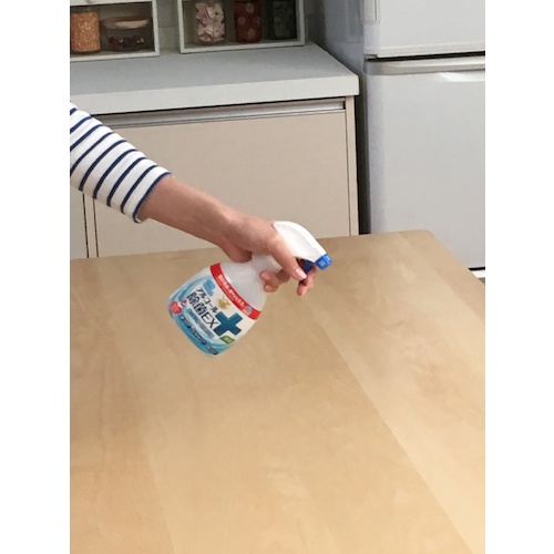 ●手軽にスプレーするだけで、細菌・ウイルスを99.99%除去*。食卓やキッチンまわりを清潔にします。
