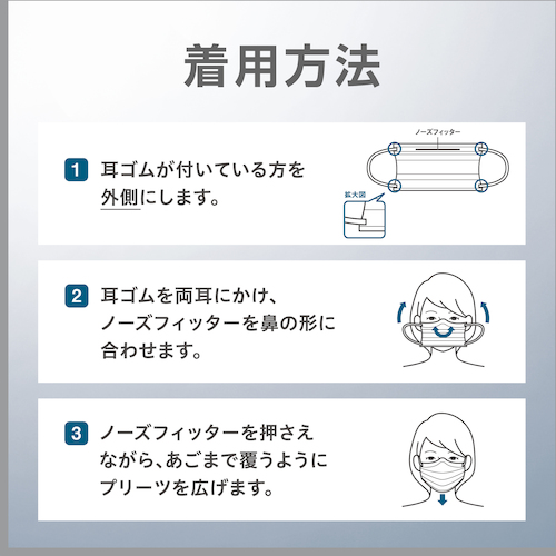 ●密着アーチ形状で、マスクと顔の間に微粒子・ウイルスが侵入する隙間を作りません。