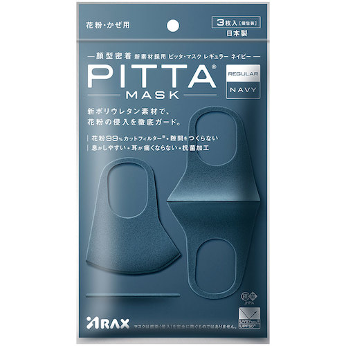 アラクス ピッタ マスク レギュラー ネイビー 3枚入 157316