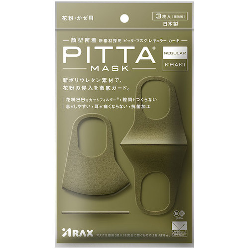 アラクス ピッタ マスク レギュラー カーキー 3枚入 157323