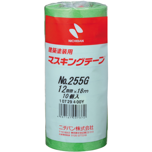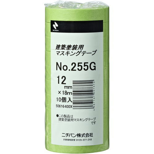 ニチバン  建築塗装用マスキングテープ 255G-12 12mmX18m(10巻入り/PK) 255GH-12