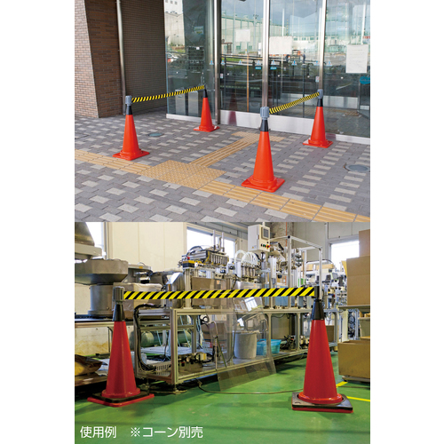 9. 緑十字 コーン用ベルトパーテーション ベルト:黄/黒(トラ柄) バリアライン-1 テープ長さ5m 284091
