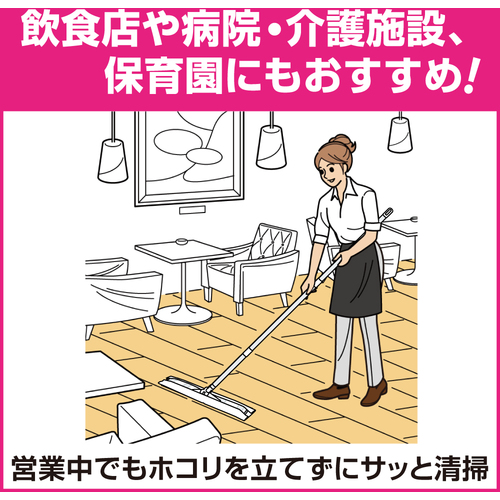 ●幅約50cmのワイドヘッドと、長さ130cmのロングサイズの柄で、広いスペースや手の届かない隙間もラクラク清掃できます。