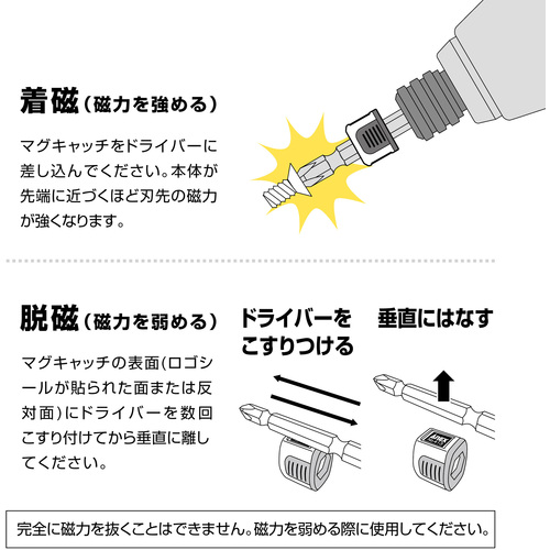 ●強力ネオジム磁石でネジを落とさずしっかりキャッチします。