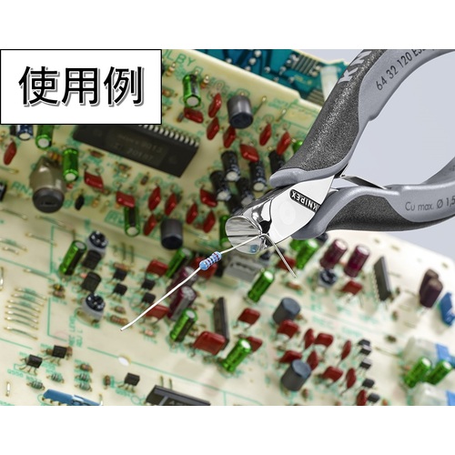 KNIPEX エレクトロニクスエンドカッティングニッパー オブリケ(15°傾斜) ESDハンドル(静電気防止) 6432-120ESD