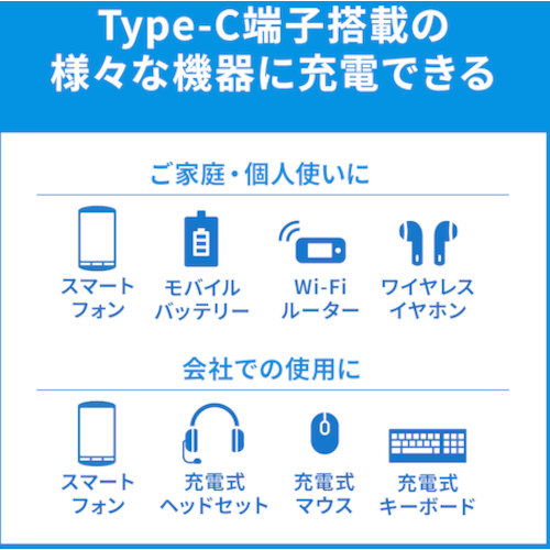 ●対応機種:Type-C端子を搭載しUSB Power Delivery 18Wの規格内での充電に対応したスマートフォン、タブレット
