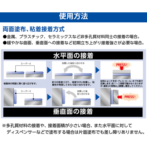 ●硬質プラスチック、金属、タイル、木、ゴム、皮などの接着。