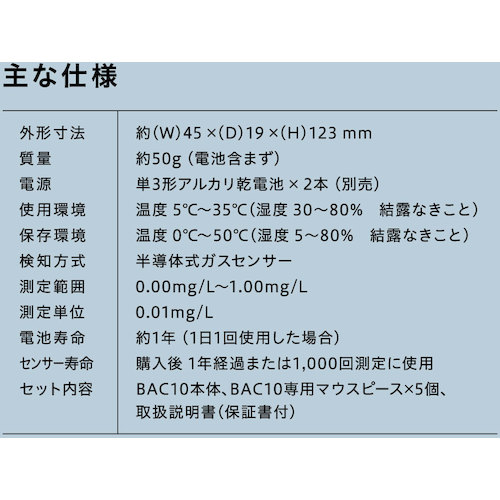 ●コストパフォーマンスに優れた半導体式のアルコール検知器です。