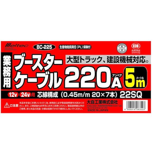 Meltec ブースターケーブル DC12V/24V・220A 5m BC-225