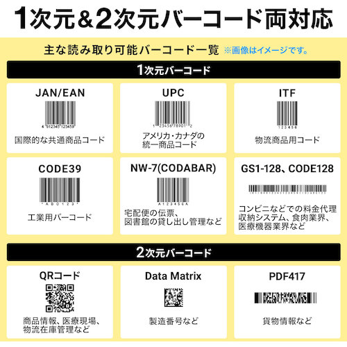 ●2次元コード・1次元コード両方の読み取りが可能な有線バーコードリーダーです。