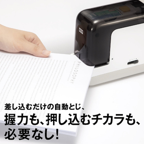 ●2~40枚を電動(電池またはACアダプタ)でとじる事ができます。