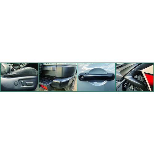 ●硬化ガラス質被膜が長期間未塗装樹脂パーツを保護します。