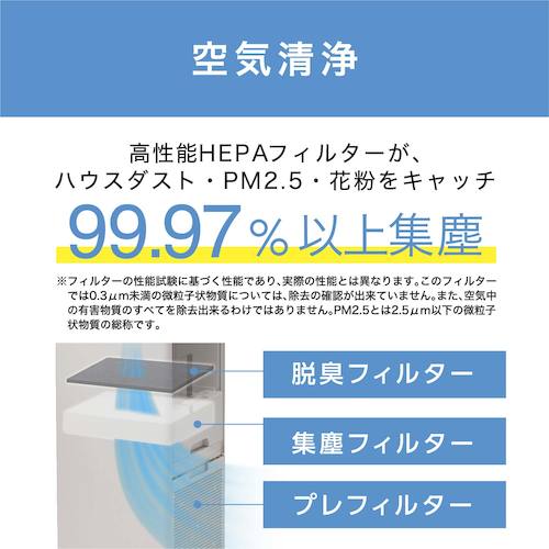●フィルター:HEPAフィルター、活性炭フィルター、プレフィルター