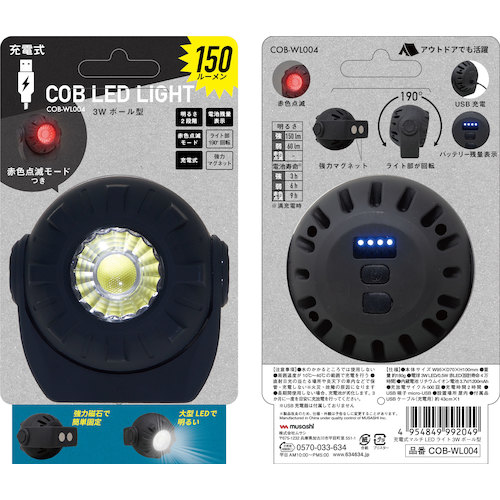musashi 充電式マルチLEDライト 3Wボール型 COB-WL004