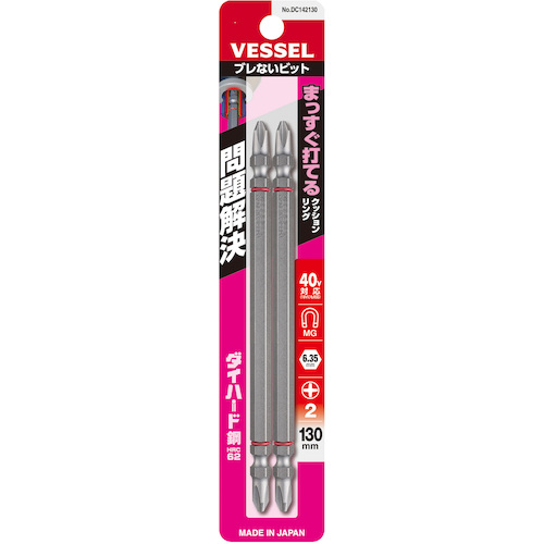 9. VESSEL ブレないビット(両頭) +2×130mm 2本組 DC142130 DC142130