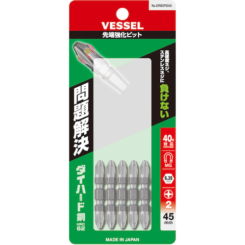 VESSEL 先端強化ビット(両頭) +2×45mm 5本組 DRB5P2045 DRB5P2045