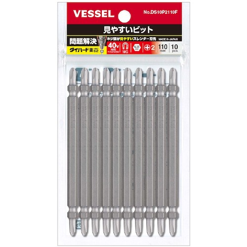 VESSEL 見やすいビット(両頭) +2×110mm 10本組 DS10P2110F DS10P2110F