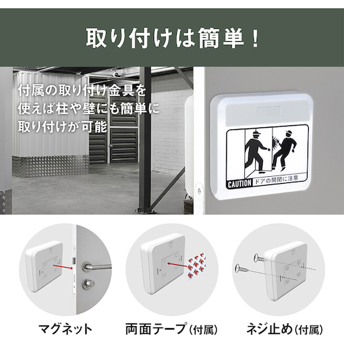 ●ドアの開閉で衝突する事故や死角になった工場の曲がり角で衝突する事故を未然に防止します。