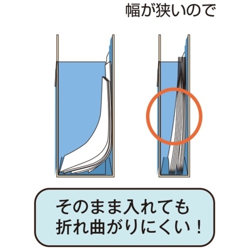 ●スリムタイプなので、書類をそのまま収納してもたわみません。