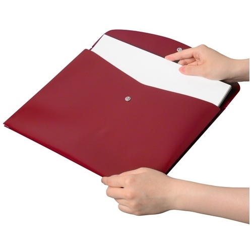 PLUS 88572)ポケット付エンベロープ 横型マチ付 赤 FL-121CH RE