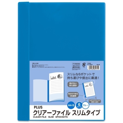 PLUS 78960)クリアファイルスリム FL-190CF ブルー FL-190CF BL