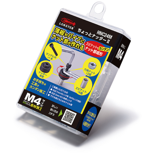 ●セット内容:M4用ナッター本体 1個、マンドレル 1個、六角ナット 2個、アルミ製エビナット 6個
