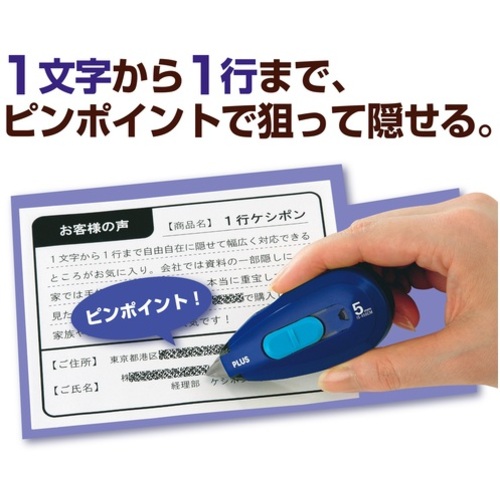 ●修正テープのようなテープタイプなので1文字から1行まで狙って隠せるタイプです。
