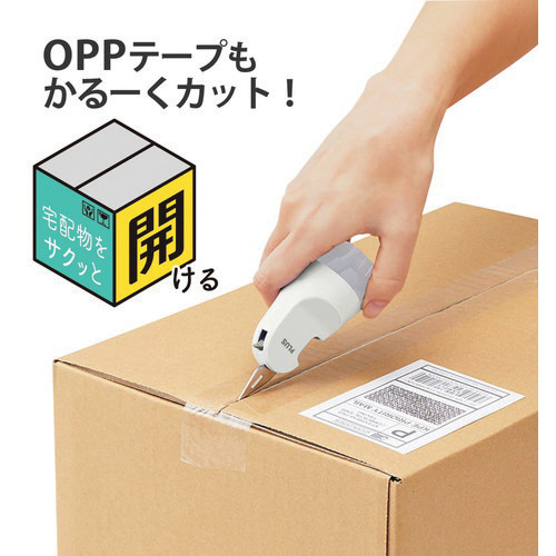 ●ひっかかりのあるギザ刃は、梱包によく使われる滑りやすいOPPテープも滑らず簡単に切れます。