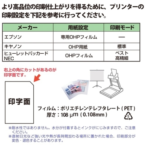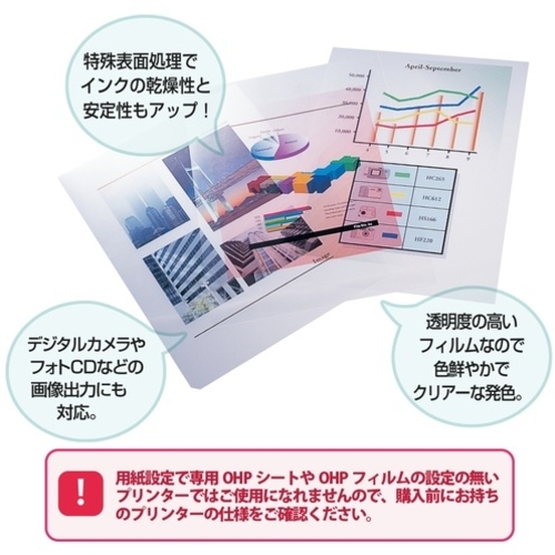 ●色鮮やかで美しい画像が得られる透明度の高いOHP用フィルムです。