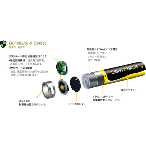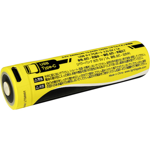 ライティンゲイル スマホにも給電できるリチウムイオン充電池3400mA/USB-TYPE-C/18650タイプ LTG0001