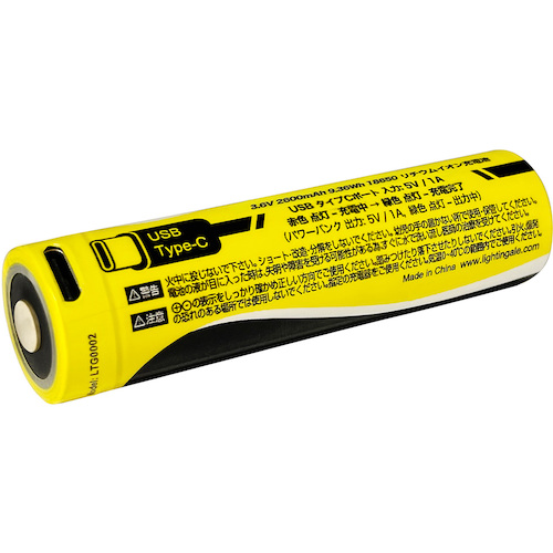 ライティンゲイル スマホにも給電できるリチウムイオン充電池2600mA/USB-TYPE-C/18650タイプ LTG0002
