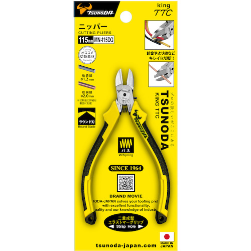 9. TTC ニッパー 115mm 成型グリップ バネ付き MN-115DG